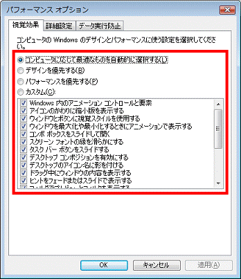 Windows Vistaでの標準的な設定値です。 - デザインを優先する