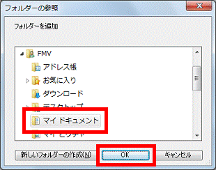 ディスクに書き込むフォルダーをクリックし、「OK」ボタンをクリックします。