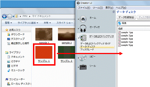 - 手順5.〜手順7.を繰り返し、ディスクに書き込むファイル、またはフォルダーを追加します。