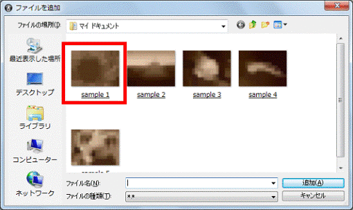 表示される画面に応じて操作します。- 「ファイルを追加」