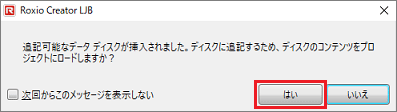 [Roxio Creator LJ / LJB] 「追記可能なデータディスクが挿入されました」と表示されずディスクに追記できません。