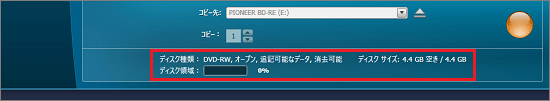 ディスクの種類や空き容量などは、画面の下部に表示される情報で確認できます。