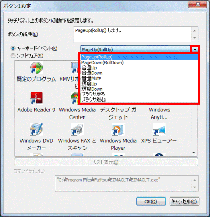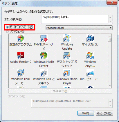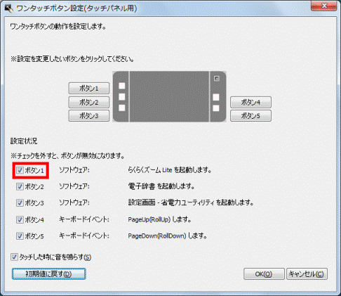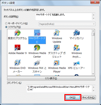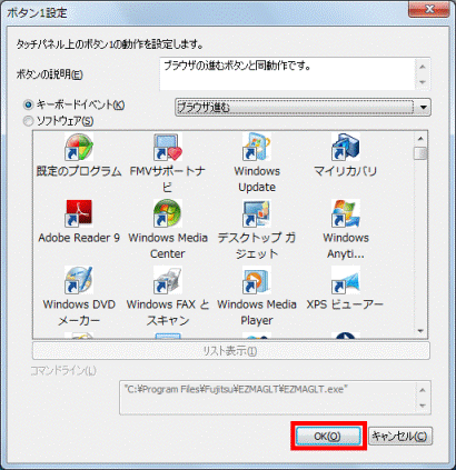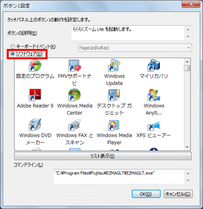 「ボタン1」の欄に、起動したいソフトウェア名が表示されていることを確認します。