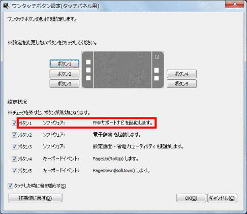 (FMVサポートナビ」を起動したい場合) - 「ワンタッチボタン設定(タッチパネル用)」に戻ります。