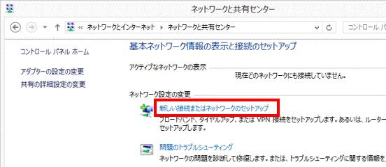 「新しい接続またはネットワークのセットアップ」をクリックします。