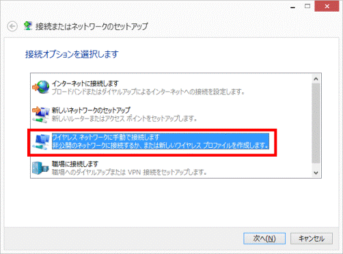 「ワイヤレス ネットワークに手動で接続します」をクリックします。