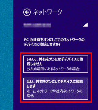 公共の場所にあるネットワークへ接続する場合は、「いいえ」ボタンをクリックします。