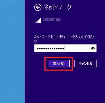 - 「ネットワークセキュリティキーを入力してください」と表示されます。