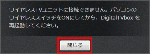 「閉じる」ボタンをクリックし、アドホックモードでの接続を切断してから、もう一度DigitalTVboxを起動してください。