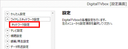 - 「DigitalTVbox [設定画面]」が表示されます。