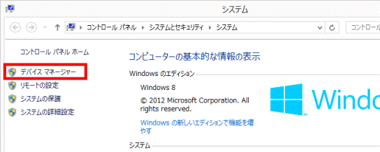 次の手順で、デバイスマネージャーの設定を確認します。