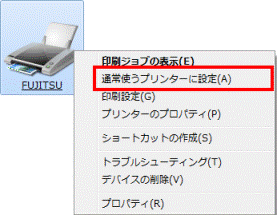 使用するプリンターのアイコンを右クリックし、表示されるメニューから、「通常使うプリンターに設定」をクリックします。