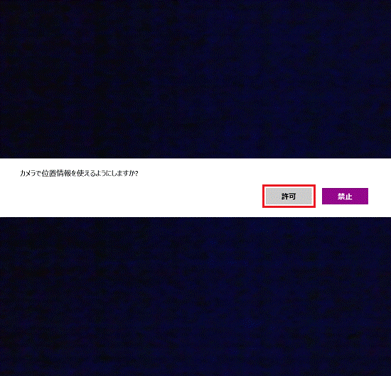 - カメラを初めて起動した場合は、「カメラで位置情報を使えるようにしますか?」、または「カメラでマイクとWebカメラを使用してもいいですか?」と表示されます。