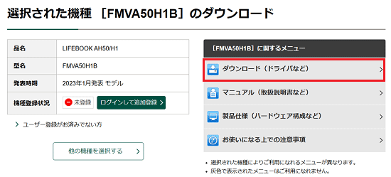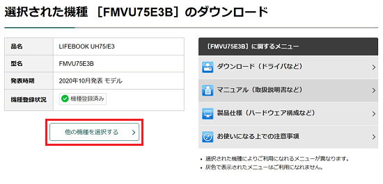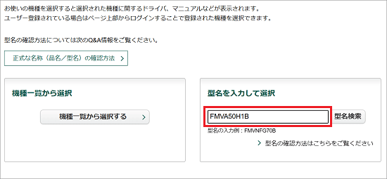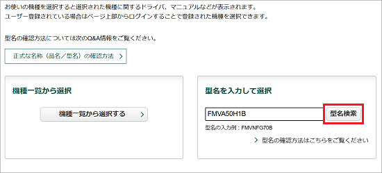 所有機種以外を選択する場合(FMVサポートページにログインしないで選択する手順)