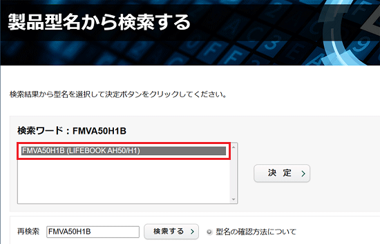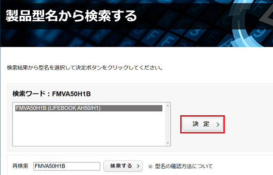「型名を入力して選択」に検索する機種の型名、または型名の一部を入力します。