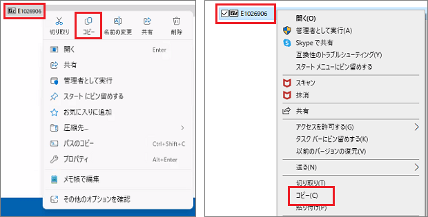 1. ダウンロードしたファイルを右クリックして表示されるメニューから、「コピー」をクリックします。