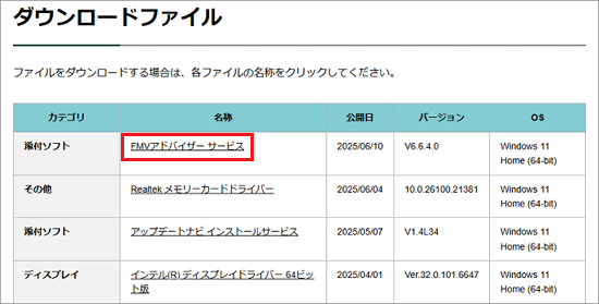 ここでは例として、「FMVアドバイザー サービス」をクリックします。