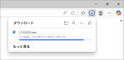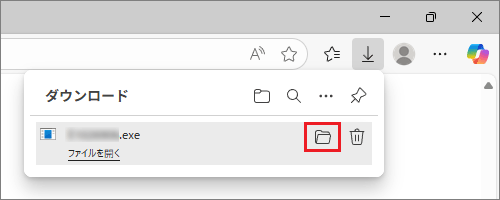 ダウンロードしたファイル名にマウスポインターを合わせて、表示されるフォルダーのアイコンをクリックします。