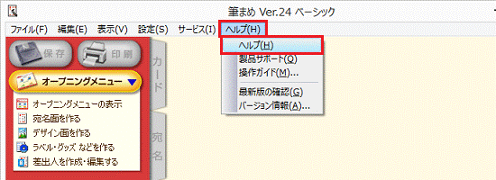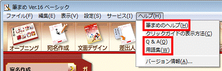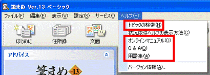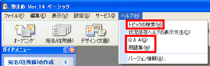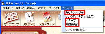 「ヘルプ」メニュー→「ヘルプ」の順にクリックすると、筆まめヘルプが起動します。