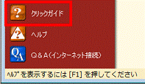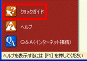 画面左下に「クリックガイド」が表示されていない場合は、画面左上にある、「ガイドメニュー」をクリックすると、「クリックガイド」が表示されます。