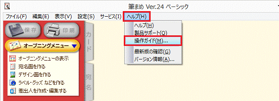 「ヘルプ」メニュー→「操作ガイド」の順にクリックし、操作ガイドを表示します。