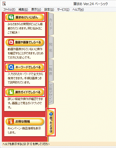 「困ったときは」から項目をクリックすると、各種のヘルプが起動します。