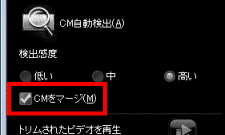 - 連続したCMをまとめたい場合は、「CMをマージ」をクリックし、チェックを付けます。