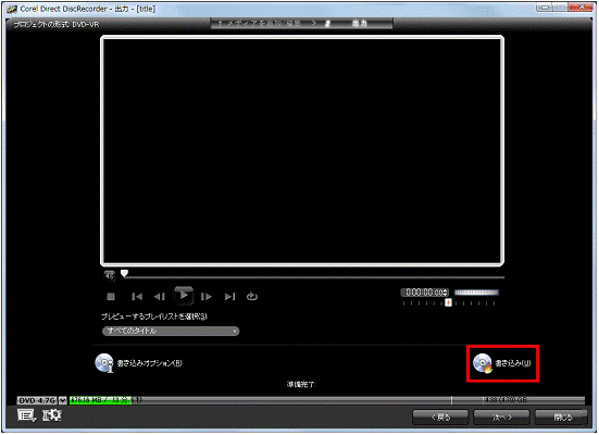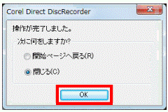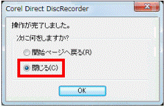 「自動再生」が表示された場合は、「×」ボタンをクリックし、メッセージを閉じます。 - 「スタート」ボタン→「すべてのプログラム」→「Corel Digital Studio for FUJITSU」→「Corel Direct DiscRecorder」の順にクリックします。