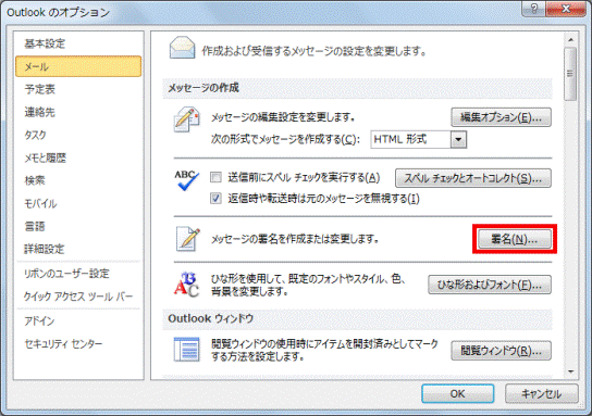 [Outlook 2010] メッセージに挿入する署名の作成方法を教えてください。