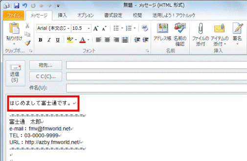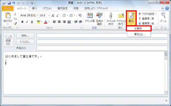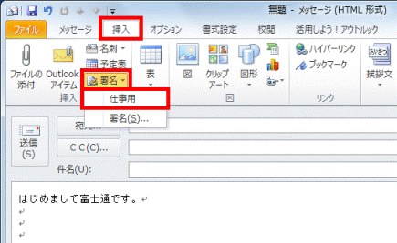 Outlook 2010では、次の手順で署名を作成し、メッセージに使用します。