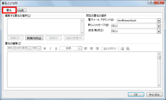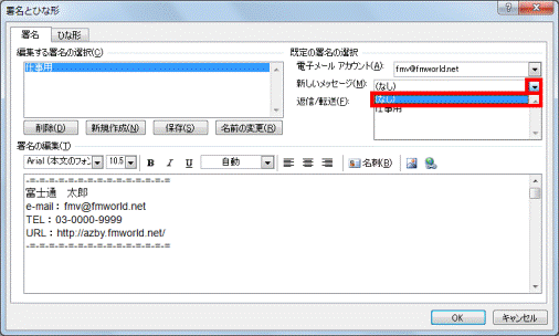 「署名の編集」欄に名前や電子メールアドレスなどを入力します。