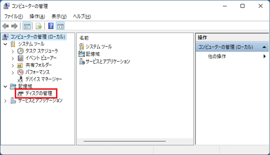 5. お使いのOSに応じて、ディスクの管理を開きます。