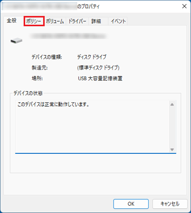 1. 取り外しポリシーの設定を確認・変更するUSBメモリを接続します。