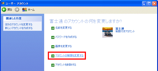 アカウントの種類を変更するユーザーアカウントをクリックします。