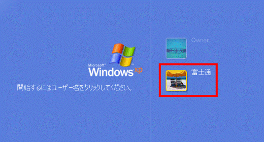 - 「開始するにはユーザー名をクリックしてください。」と表示されます。