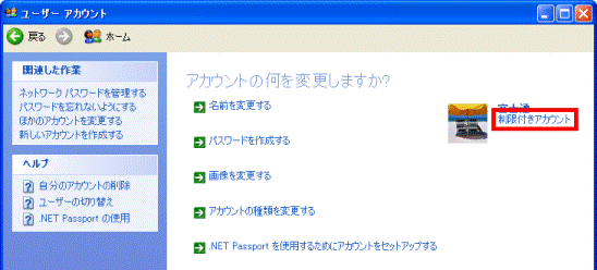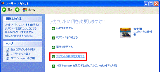 アカウントの種類を変更するには、アカウントの種類がコンピュータの管理者になっているユーザーアカウントに、ログオンする必要があります。