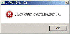 [マイリカバリ] 「バックアップ先ディスクの容量が足りません。」と表示されます。