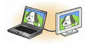 パソコンの出力端子に対応した、外部ディスプレイやテレビなどの映像機器を用意します。