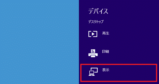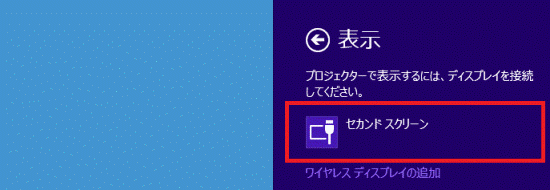 キーボードで切り替えられない場合は、チャームからセカンドスクリーンを表示し、表示するディスプレイを切り替えます。