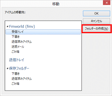 ここでは例として、「フォルダーへ移動」をクリックします。