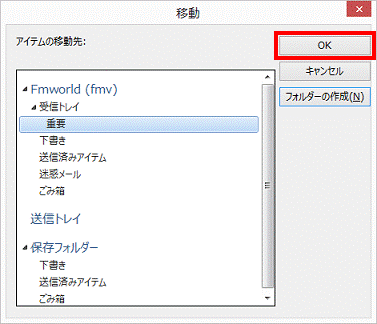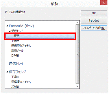 - 既存のフォルダーに「移動」(または「コピー」)する場合