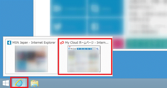 タスクバーにあるInternet Explorer のアイコンにマウスポインターを合わせ、表示されるタブの一覧から、切り替えたいタブのサムネイルをクリックします。