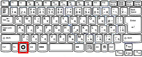 - キーボードの左下の、【Fn】キーと【Alt】キーの間にある【Windows】キーを押します。