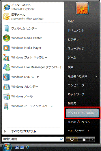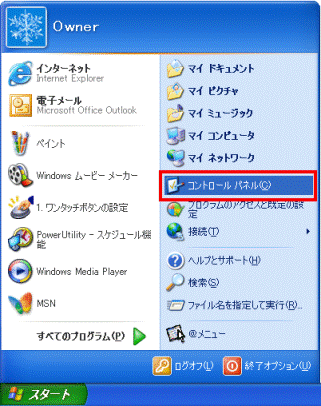 - 「スタート」ボタン→「コントロールパネル」の順にクリックします。