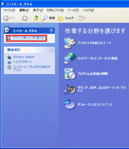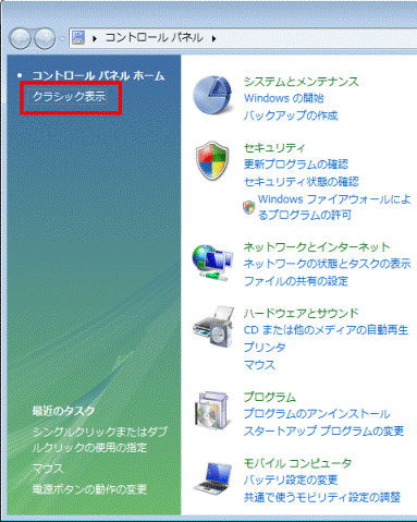 - 「コントロールパネル」が「クラシック表示」で表示されることを確認します。