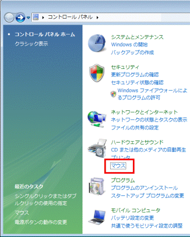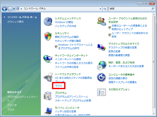 「クラシック表示」の場合は、「マウス」をクリックします。