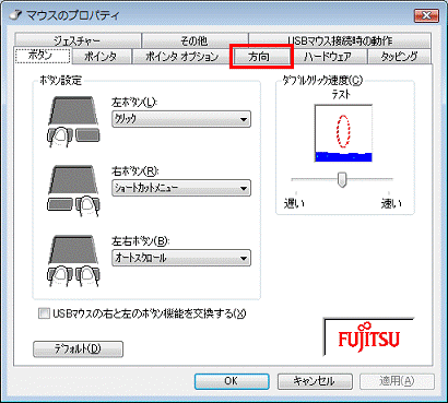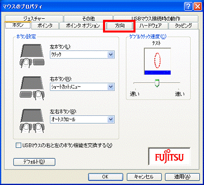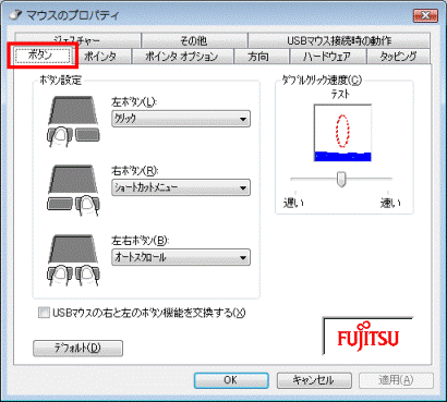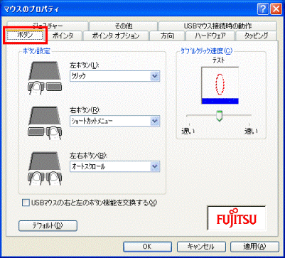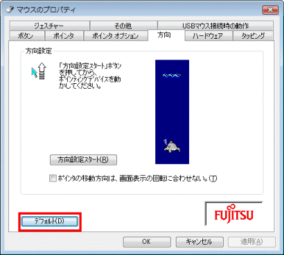 このときは、「マウスのプロパティ」で「デフォルト」に設定することで、正しく動作します。