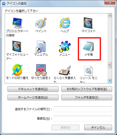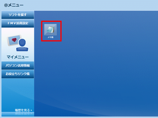 [@メニュー] マイメニューにアプリケーションを登録する / 削除する方法を教えてください。(2008年秋冬モデル〜2011年夏モデル)(新しいウィンドウで表示)@メニューには、お好みのアプリケーションを登録して起動できるマイメニューがあります。