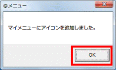 - 「マイメニューにアイコンを追加しました。」と表示されます。