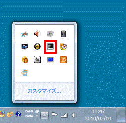 - 通知領域に表示されている「▲」ボタンをクリックします。